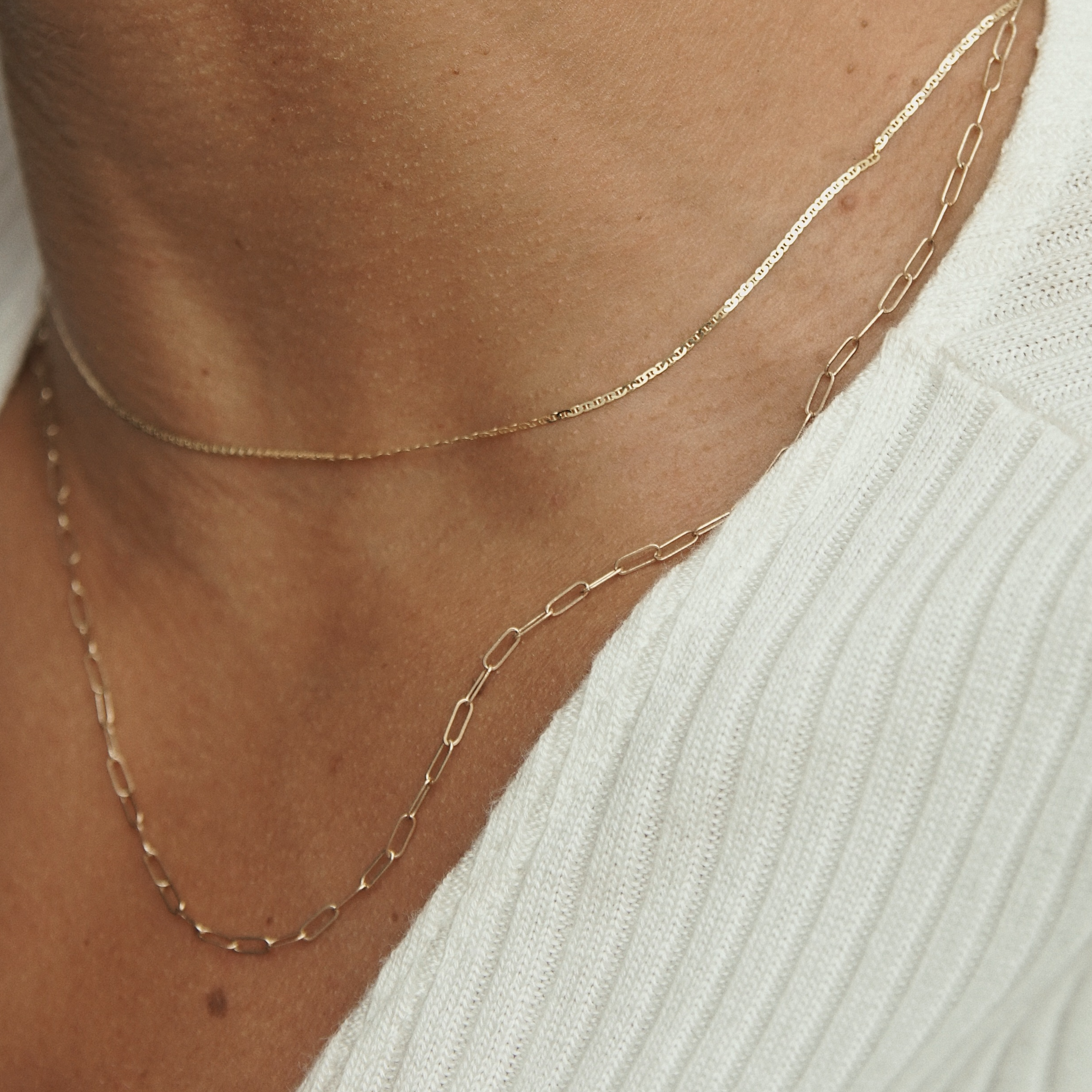 Mix and match charms to customize your own modern version of a classic charm bracelet, anklet, or necklace. Or consider layering it with an all time favorite, the Square Pendant Necklace.