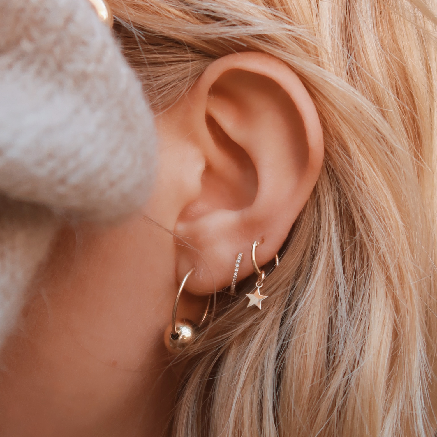 Layer the Star hoops with your other heirlooms. This design is for the everyday minimalist. The stars can be removed for a more minimal affect.