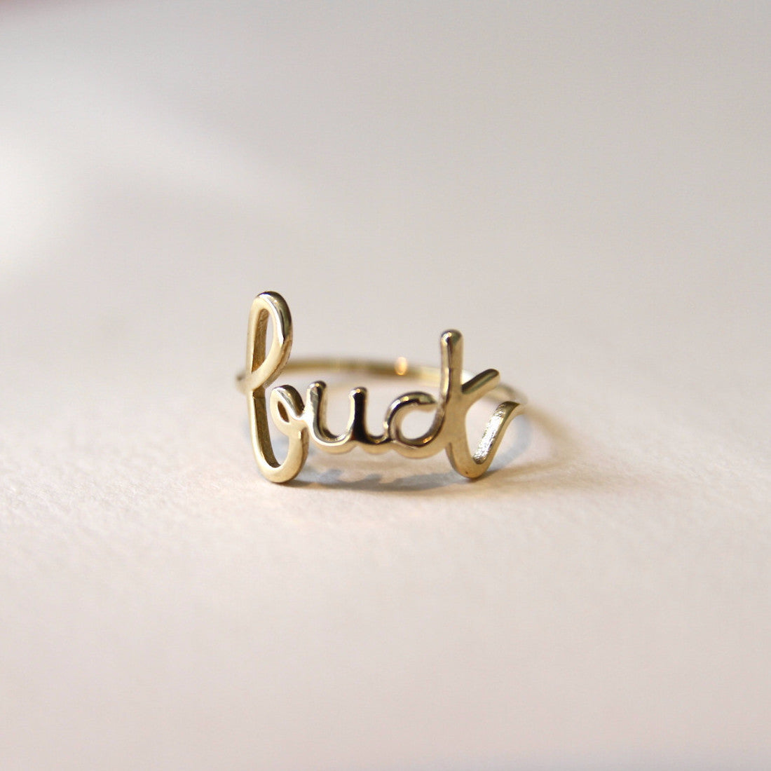 Wear the Fuck ring layered with a few plain bands beneath it. Perfect to bring you humor and wit everyday.
