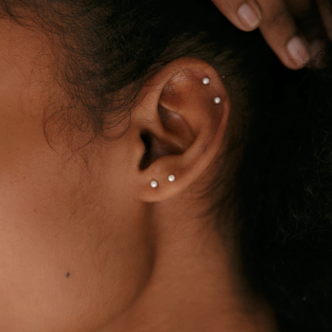 Pair the Pearl Studs with our Ball Studs for a cohesive dainty layered look on your ear.